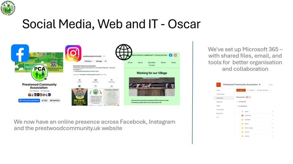 The main event of 2025 was ‘Prestwood Big Week‘. In very short time, 13 events and activities came together in a celebration of Prestwood. PCA was also very glad to host our MP, Greg Smith, for a very informative meeting with residents.